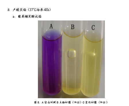 3、 將菌種接種到生理生化檢測培養基中,37℃培養48h。檢測菌種生理生化特性。