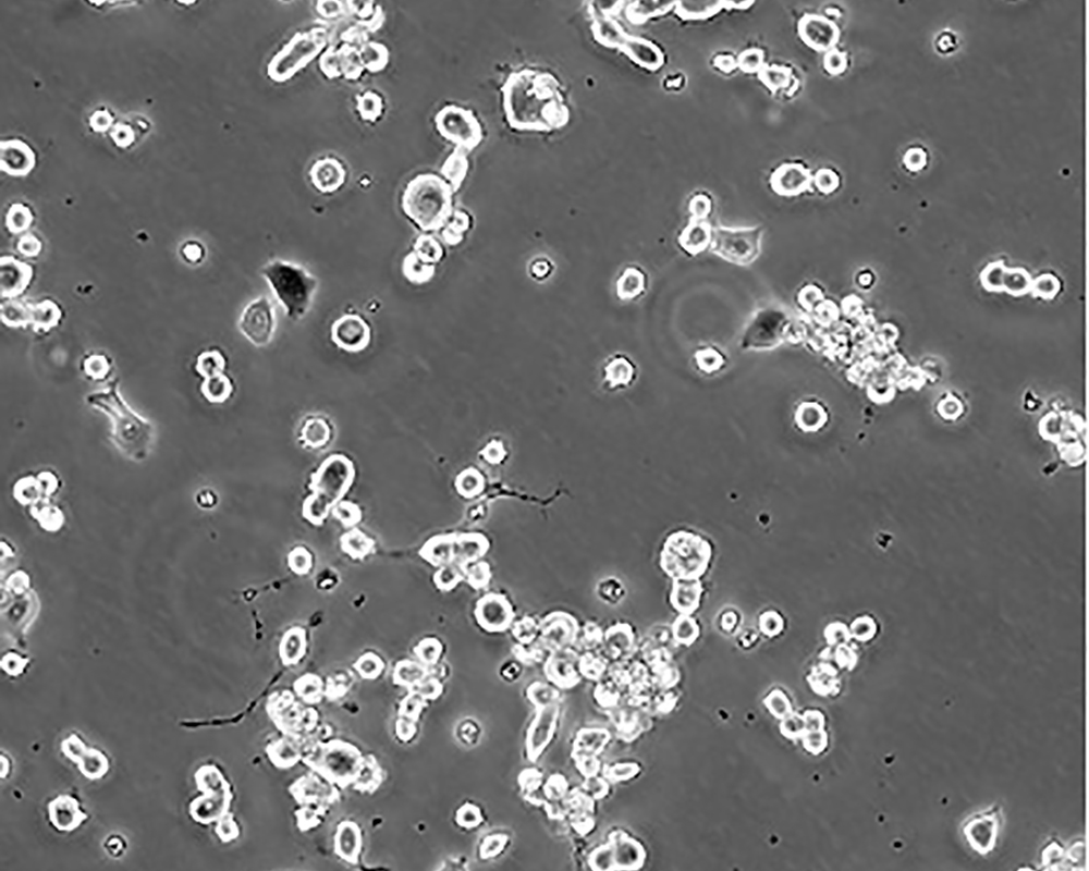 :待細胞生長狀態(tài)良好時,可進行細胞凍存。下面T25瓶為例;1.細胞凍存時,棄去培養(yǎng)基后,PBS清洗瓶底1-2次后加入1ml胰酶,細胞變圓脫落后,加入2ml完全培養(yǎng)基終止消化,可使用血球計數(shù)板計數(shù)。2.1000RPM離心5分鐘去掉上清。用血清重懸浮,加DMSO至最終濃度為10%。加入DMSO后迅速混勻,按每1ml的數(shù)量分配到凍存管中,注意凍存管做好標識。本公司按每個凍存管細胞數(shù)目大于1X106個細胞凍存。3.將凍存管置于程序降溫盒中,放入-80度冰箱,至少2個小時以后轉(zhuǎn)入液氮灌儲存。記錄凍存管位置以便下次拿取。 |