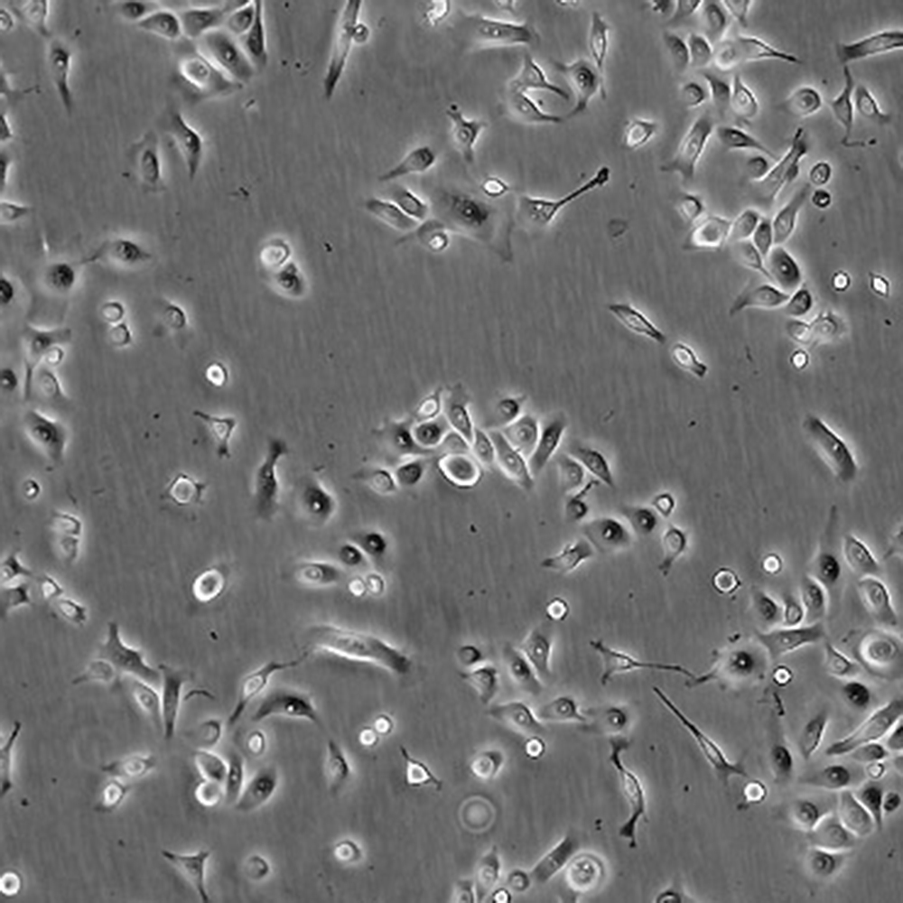 如果細胞密度達80%-90%,即可進行傳代培養。1. 棄去培養上清,用不含鈣、鎂離子的PBS潤洗細胞1-2次。2. 加2ml消化液(0.25%Trypsin-0.53mM EDTA)于培養瓶中,置于37℃培養箱中消化1-2分鐘,然后在顯微鏡下觀察細胞消化情況,若細胞大部分變圓并脫落,迅速拿回操作臺,輕敲幾下培養瓶后加少量培養基終止消化。3. 按6-8ml/瓶補加培養基,輕輕打勻后吸出,在1000RPM條件下離心4分鐘,棄去上清液,補加1-2mL培養液后吹勻。4. 將細胞懸液按1:2到1:5的比例分到新的含8ml培養基的新皿中或者瓶中。 |